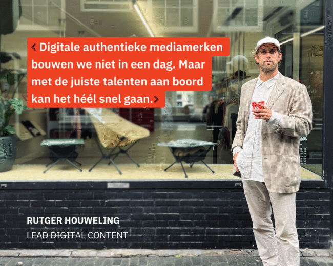 “Digitale authentieke mediamerken bouwen we niet in een dag. Maar met de juiste talenten aan boord kan het héél snel gaan.” – Rutger Houweling, Lead Digital Content.