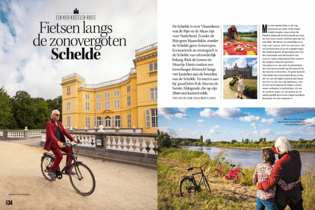 In hun winnende artikel nemen Rick en Maartje de lezer mee op een zomerse fiets-tweedaagse door de Scheldevallei met boeiende verhalen over de geschiedenis van unieke kastelen in Bazel, Hingene, Bornem en Laarne.